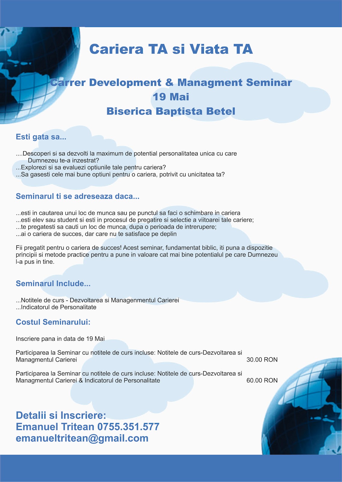Pentru inscrierea si detalii: