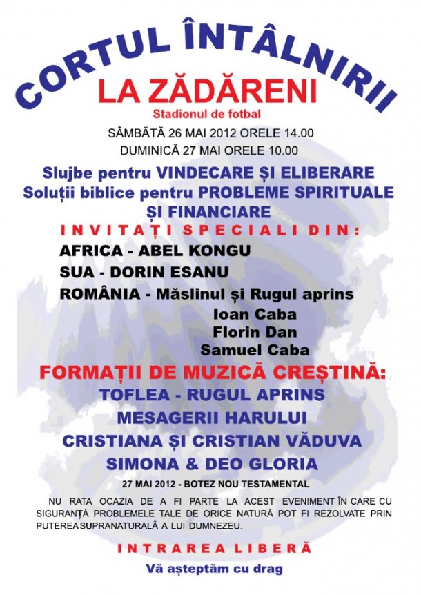 Evenimentul “Cortul Ȋntâlnirii” se va desfăşura anul acesta în data de 26 şi 27 mai 2012 la Zădăreni, Arad, pe stadionul de fotbal.