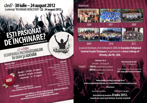 Pentru mai multe detalii şi înscrieri, vă rugăm să accesaţi www.scoaladeinchinare.ro.