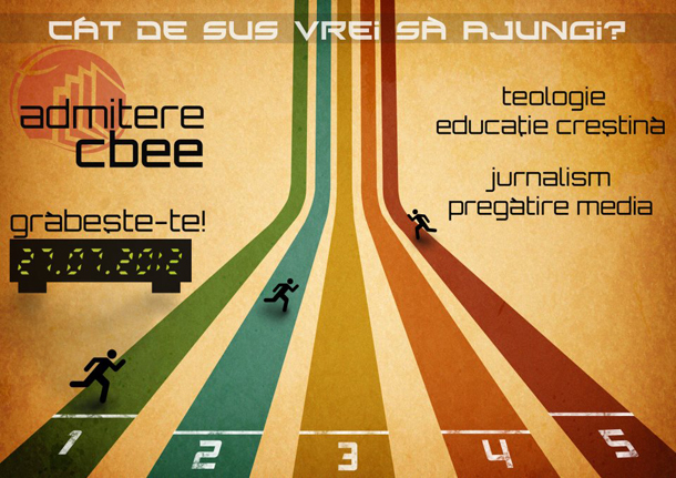 3. Prezentarea unui proiect în oricare din domeniiile media: presă scrisă, internet, fotografie, etc., din care să reiasă interesul candidatului pentru un anume domeniu media. Pentru mai multe informații, scrieți la admitere@cbee.ro sau eebc@rdslink.ro