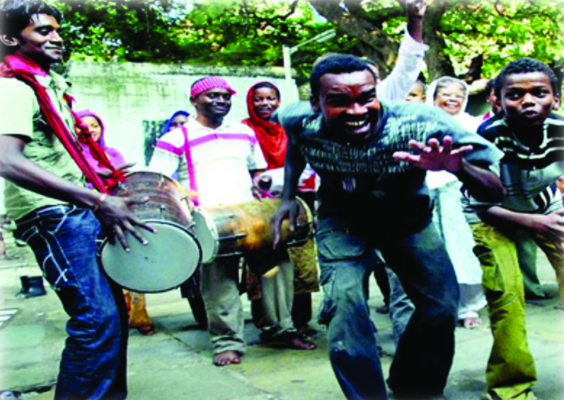 Cu mulți ani în urmă, cu mult timp înainte ca sclavii africani să fie aduși în America, Brazilia și Caraibe, oamenii Siddi au fost vânduți ca și soldați sclavi în India. Un mare număr a venit sau au fost aduși din diferite părți din Africa pentru a servi în armatele musulmane Nawab și Sultan – de la care au adoptat și credința musulmană. Fiind indieni cu origini africane, poporul Siddi este un popor marginalizat din punct de vedere economic și social. Sunt prinși între două societăți și nu se pot conforma nici societății indiene, nici culturii lor africane. Aceștia vorbesc în mare parte hindi și gujarati, dar majoritatea cântecelor lor au un strop de swahili. De fapt, muzica lor, cântările și dansul sunt singura legătură cu istoria lor africană.