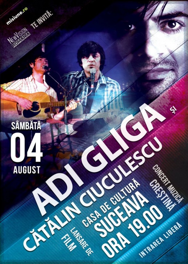 Share Facebook Twitter LinkedIn Pinterest Email Sâmbătă, 04 august, va avea loc un concert de muzica creștină, susținut de Adi Gliga și Cătălin Ciuculescu, la Casa de Cultură Suceava, începând cu ora 19.00. Vă așteptăm împreună cu prietenii voștri! Apreciază:Apreciază Încarc...