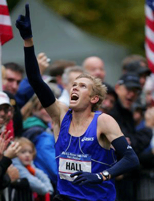 Hall e unul dintre cei mai valoroși reprezentanți ai statelor Unite. Cel mai valoros timp l-a scos în Maratonul din Boston din 2011, cu un timp de două ore, patru minute și 58 de secunde.