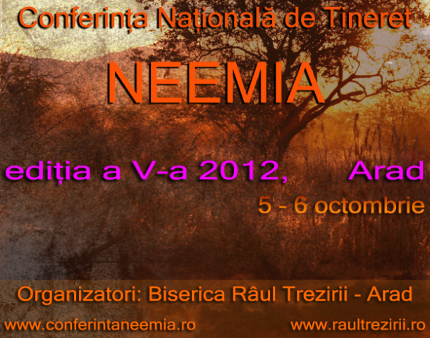 Această ediție a Conferinţei Naţionale NEEMIA este organizată de BISERICA “RÂUL TREZIRII” ARAD – www.revivalromania.ro.