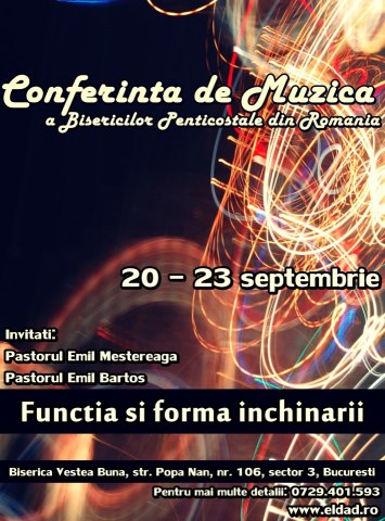 Duminică, 23 septembrie, vom fi împreună în două biserici din București (Biserica “Vestea Bună” și Biserica “Filadelfia”), unde vom sluji folosind repertoriul parcurs cu ocazia acestei conferințe.