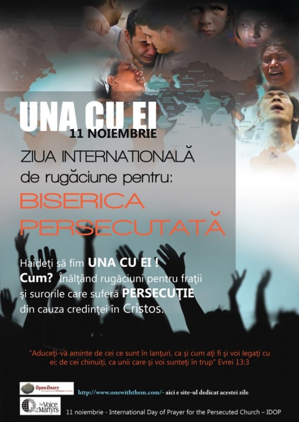 11 noiembrie 2012 este Ziua Internationala de Rugăciune pentru Biserica persecutată din întreaga lume. Există multe țări în lumea de astăzi în care creştinii sunt martirizați pentru credința lor.