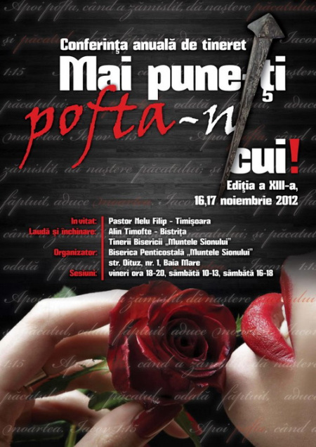 Departamentul de tineret al Bisericii Penticostale “Muntele Sionului” Baia Mare vă invită să participaţi la cea de-a XIII-a ediţie a Conferinţei anuale de Tineret.