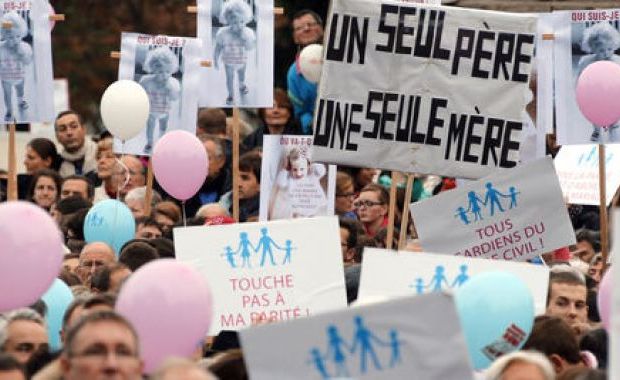 Peste 100.000 de oameni din Franța au protestat sâmbătă împotriva legalizării căsătoriilor între homosexuali în această țară.