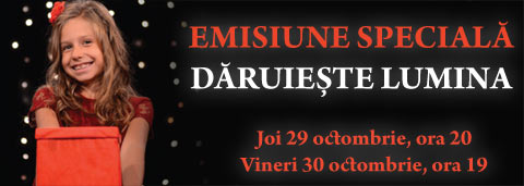 Petreceti alaturi de Alfa Omega TV doua seri speciale! Joi, 29 noiembrie, de la ora 20, si vineri 30, noiembrie, de la ora 19, Alfa Omega TV va invita in spatele cortinei. Emisiunea speciala Daruieste lumina va prezinta in detaliu cine este, ce face Alfa Omega si care este impactul pe care il are in Romania: marturii, povesti de viata, interviuri si imagini din culise.