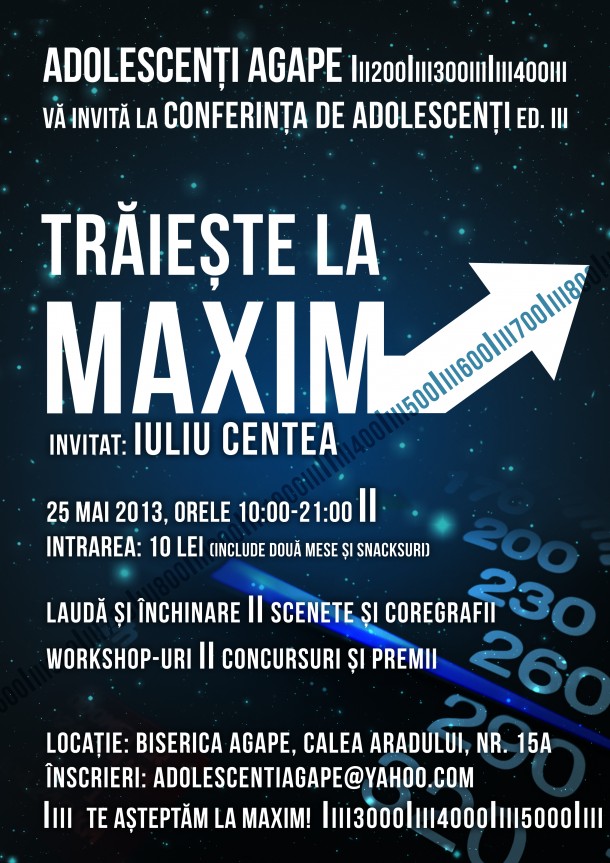 Primii 30 de adolescenti care se inscriu la conferinta din alt judet (alt judet decat Timis) vor primi bilete speciale cu INTRAREA GRATUITA !!!