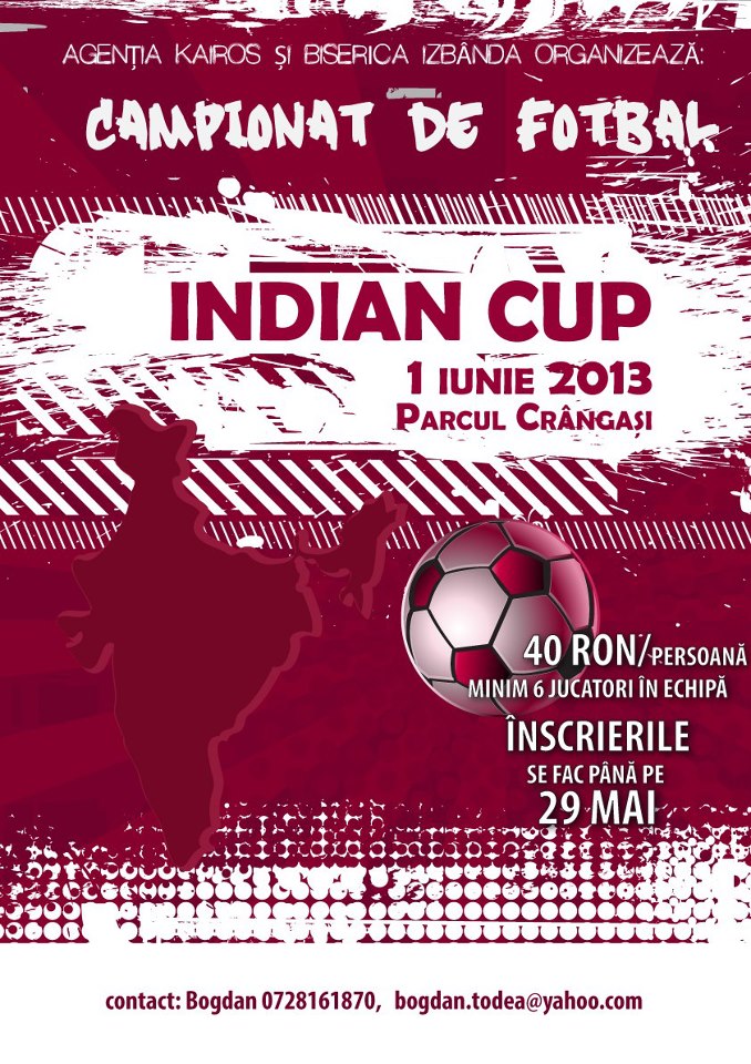 Organizatorii INDIAN CUP le ureaza bun venit in competitie si fie ca cea mai buna echipa sa castige CUPA! Fair-playul sa predomine!!!