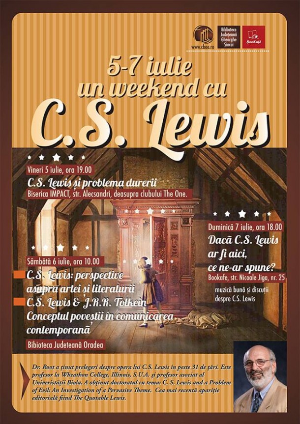 Colegiul Biblic Est European, alături de Biblioteca Judeţeană “Gheorghe Şincai” Oradea şi Bookafe, organizează trei zile de analiză a moştenirii editoriale pe care C.S. Lewis ne-a lăsat-o, anul acesta împlinindu-se 50 de ani de la moartea scriitorului creştin. Întâlnirile se vor desfăşura în următoarele locaţii din Oradea: