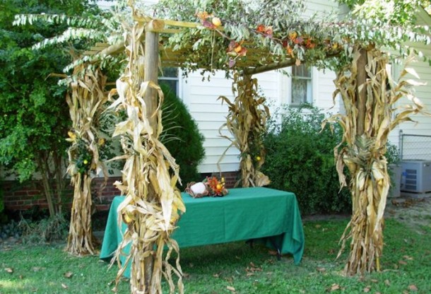 Acoperişul cortului (sukka) trebuie să fie din materiale naturale, neprocesate care au crescut în sol – cum ar fi ramuri de copac, prăjine de bambus sau chiar lemn care a fost modelat în scânduri. Mai mult, acoperişul ar trebui lăsat deschis, ca oamenii dinăuntru să poată vedea cerul. Sukka este de obicei decorată cu fructe şi legume de toamnă, care sunt legate în şiruri şi apoi agăţate în jurul său (sursă 1).