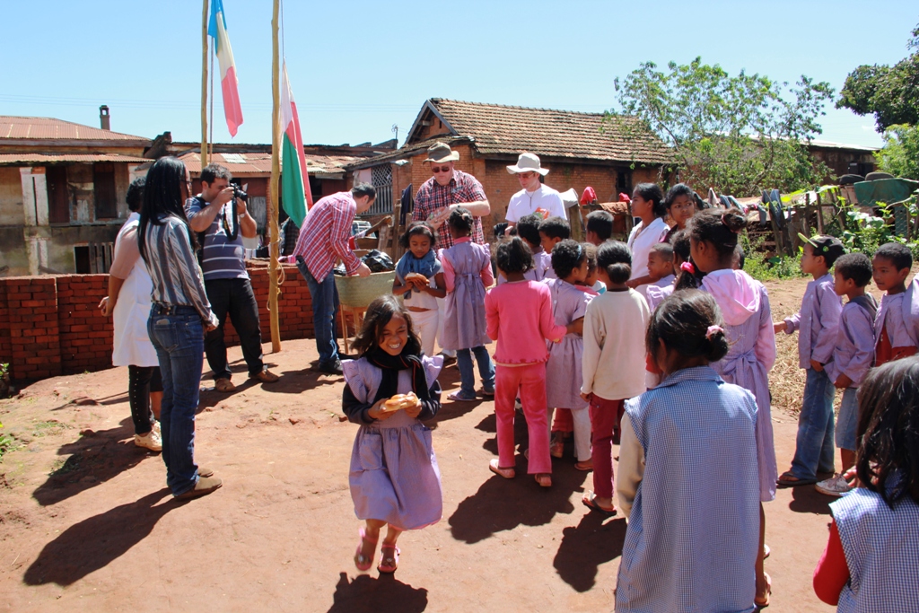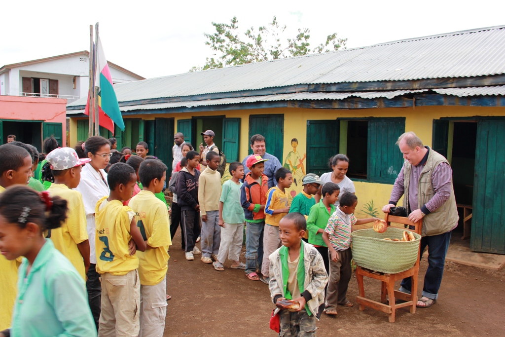 Doua dintre lucrarile noastre de aici implica parteneriate cu 2 colegii cu un total de peste 200 de copii. Le-am vizitat in zile diferite. Am avut partasie cu profesorii, timp de capela – rugaciune, incurajari si cantare cu copiii, timp de relaxare cu ei: fotbal, baschet, alte jocuri. Pastorii romani au incurajat copiii si chiar au cantat cantari. Pastorul Daniel Hada a trebuit sa le predice copiilor ad-hoc. I-a incurajat din cartea Daniel. Apoi a invatat sa numere pana la 100 in limba malgasa, insotit de un cor de 50-60 de copii ce il inconjurau. Pastorii Danut Tintean si Ciprian Barsan au impartit cornuri cu miere pentru fiecare dintre copiii de la cele doua scoli. Pastorul Dan Cata a povestit cu profesorii si cu directorii scolii, incurajandu-i sa aiba viziune si sa planteze invatatura, dar si Cuvantul lui Dumnezeu in vietile copiilor. Scolile au fost binecuvantate si in alte feluri: ajutor financiar pentru materiale didactice, sponsorizare taxe copii la scoala, sponsorizare pentru obtinerea atestatului de liceu a uneia dintre scoli, cumparare banci pentru una dintre scoli.