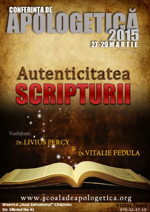 Vă aşteptăm la Biserica “Isus Salvatorul” din Chişinău să studiem în profunzime “Veridicitatea şi Autenticitatea Scripturii”!