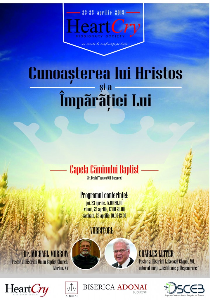 În perioada 23-25 aprilie 2015 va avea loc conferinţa “Cunoaşterea lui Hristos şi a Împărăţiei Lui” la Capela Căminului Baptist, str. Dealul Țugulea 9-11, București.