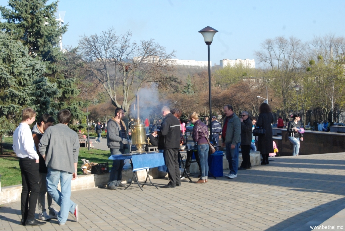 În vinerea mare, creştinii de pretutindeni comemorează moartea Mântuitorului nostru Isus Cristos. Tinerii Bisericii “Betel” din Chişinău, Republica Moldova au dedicat această zi închinării prin muzică, slujire şi comunicare cu locuitorii oraşului Chişinău. De la ora 17:30, Parcul Afgan din sectorul Rîşcani al capitalei a fost gazda unui eveniment evanghelistic unde copii lui Dumnezeu a comemorat moartea Domnului Isus şi au proclamat bucuria învierii Lui prin muzică şi discuţii la ceai în jurul unui samovar.
