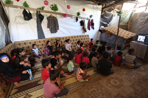 Școala televizată a fost lansată pentru a permite copiilor sirieni și irakieni strămutați, ale căror educație a fost perturbată de un conflict armat, să înceapă să învețe din nou vizionând canalul TV prin satelitul SAT-7 COPII.