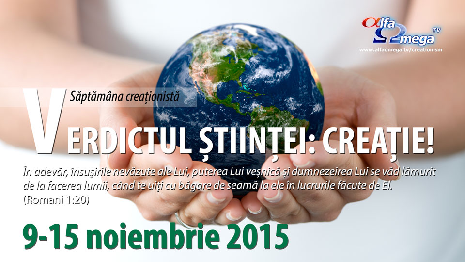 Nu rata Săptămâna Creaționistă, 9-15 noiembrie 2015, doar la Alfa Omega TV! Un regal de programe video, articole și informații științifice uimitoare despre Creator și Creația Sa.