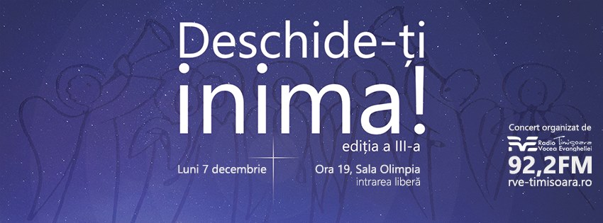 Evenimentu va avea loc luni, 7 decembrie de la ora 19:00, la Sala Olimpia din Timișoara cu titlul: “Deschide-ți inima!”