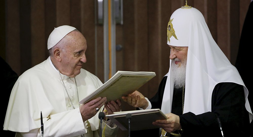 Relațiile dintre Moscova și Vatican s-au îmbunătățit treptat după decesul papei Ioan Paul al II-lea (în 2005), venit dintr-o tradiție poloneză în care rămanea înțelenită o suspiciune istorică fața de Rusia. Însă papa Francisc este un argentinian fără niciun bagaj istoric asociat diviziunii Europei pe linia est-vest după cel de al Doilea Razboi Mondial.