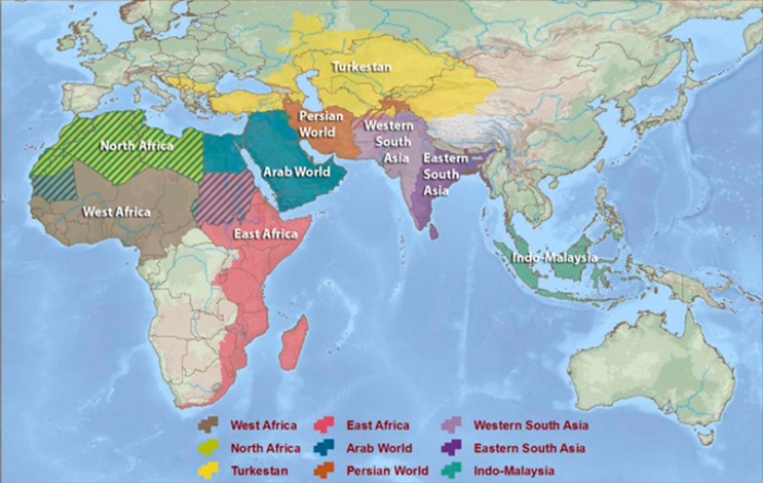 Casa Islamului poate fi împărţită geo-cultural în nouă regiuni distincte sau “Camere în Casa Islamului”: