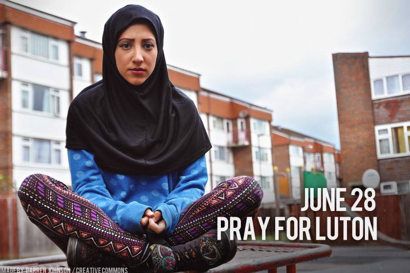 La aproximativ 65 km nord de Londra este situat oraşul Luton. Peste 25% din populaţia oraşului (215,000) sunt musulmani. Din 1990, Luton a fost pe nedrept recunoscut ca oraş al extremismului musulman. Mai recent însă, a fost recunoscut drept oraşul anti extremism musulman.