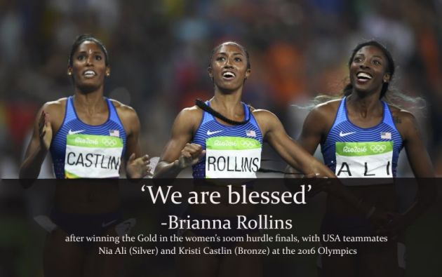 Brianna Rollins a câștigat o medalie de aur la Jocurile Olimpice de la Rio, dar ea spune că vrea să fie memorată pentru credința ei cât și atletismul ei. Rollins a câştigat aurul la obstacole de 100 de metri categoria femei. Cei doi coechipieri din SUA, Nia Ali, și Kristi Castlin, au câştigat argint și bronz. Este prima dată din 1972 când o singură țară a câștigat aur, argint, bronz la aceeaşi categorie, potrivit The Christian Examiner.
