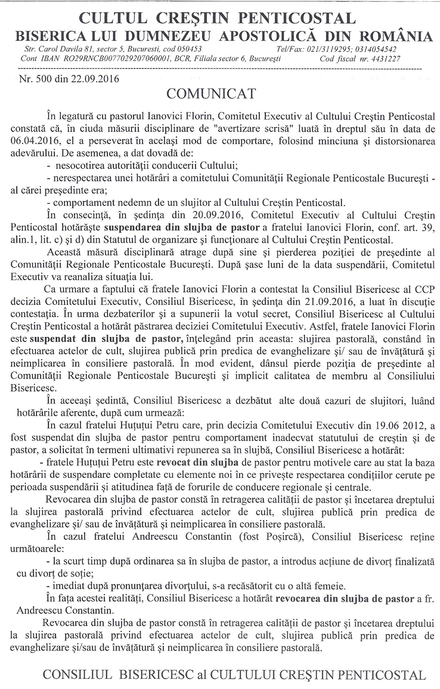 Share Facebook Twitter LinkedIn Pinterest Email Redăm mai jos comunicatul apărut astăzi pe site-ul Cultului Penticostal din România Apreciază:Apreciază Încarc...
