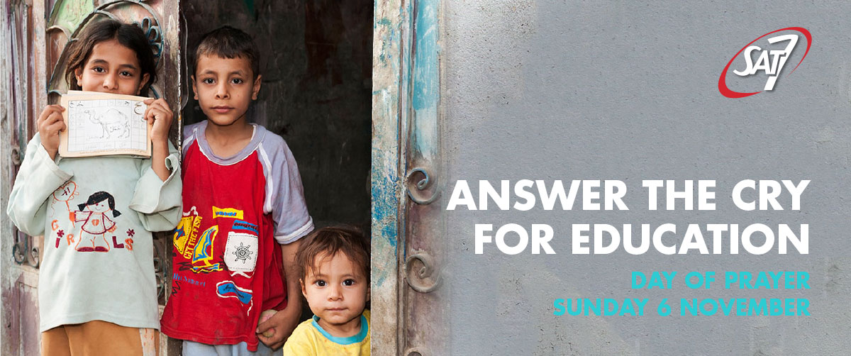 Având milioane de copii refugiați din Orientul Mijlociu care nu au acces la educație, precum și mulți tineri adulți care au respins oportunitățile academice ivite, televiziunea creștină SAT-7 cere creștinilor de pe glob să se alăture inițiativei sale de a se ruga pentru educație în regiune.