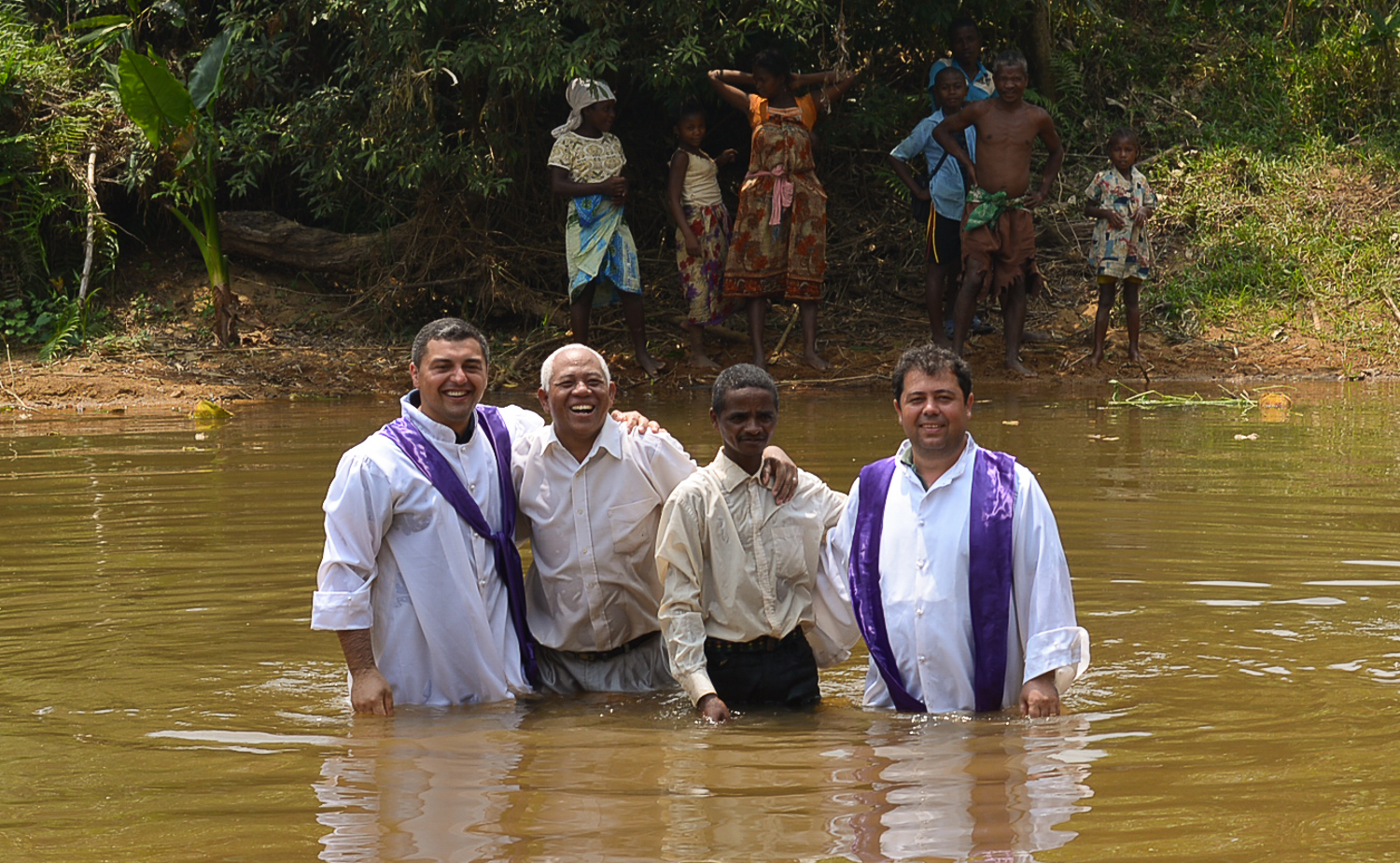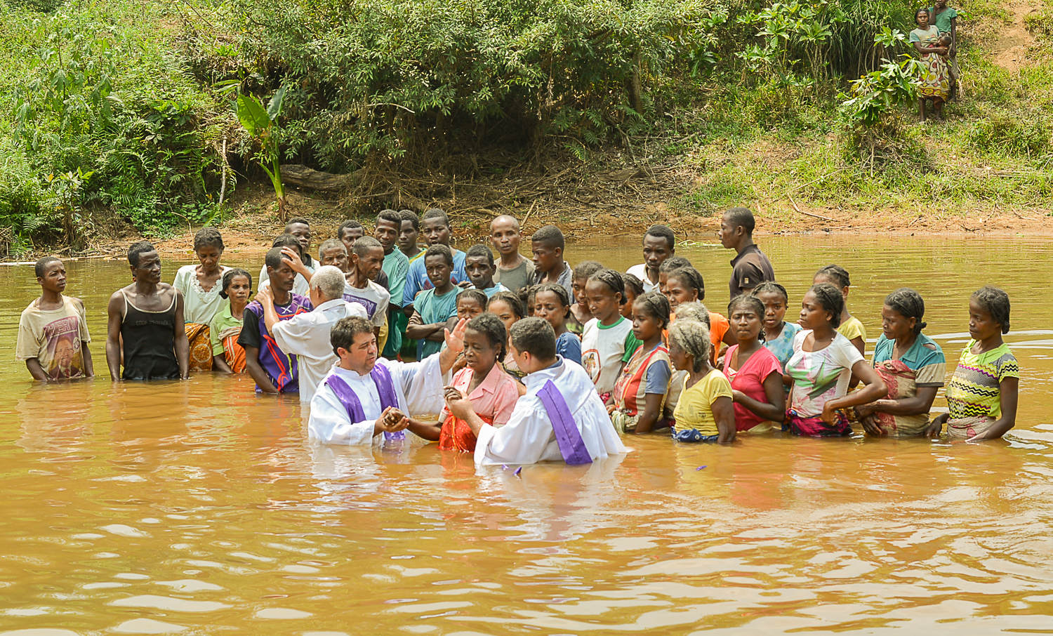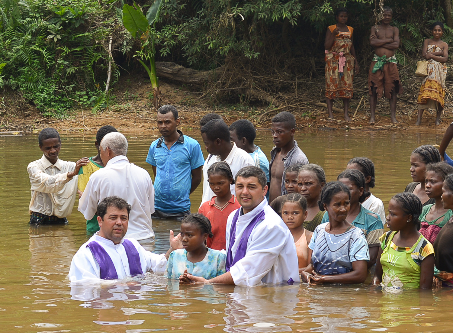 Apoi am mers la apă pe cărările orezăriilor. Un mic râu trecea pe undeva în apropierea satului. Conduși de pastorul Andre, însoțit de pastorul Clauvice – pastori malgași, pastorul Dorel Grec și eu, am intrat în apă și am botezat cei aproximativ 90 de oameni care au luat decizia de trăi pentru Dumnezeu și a renunța la animism și credința în ocultism. Lăudat să fie Dumnezeu pentru o așa recoltă bogată!