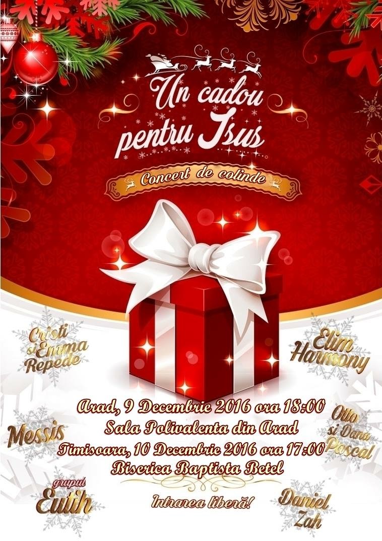 Share Facebook Twitter LinkedIn Pinterest Email Sâmbătă 10 Decembrie ora 17.00 Biserica Baptistă Betel Timișoara, Str. Ady Endre nr. 20 Apreciază:Apreciază Încarc...