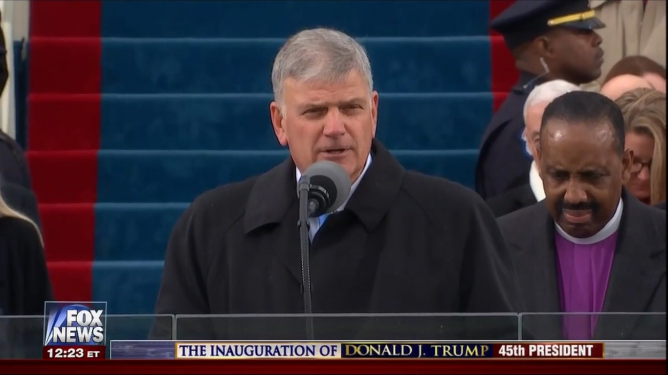 Evanghelistul Franklin Graham este unul dintre cei șase membri ai clerului care au participat la ceremonie. Acesta s-a rugat pentru noul președinte și a ținut o cuvântare. Graham a explicat că ori de câte ori se vorbește despre ploaie în contextul biblic, aceasta simbolizează binecuvântare.