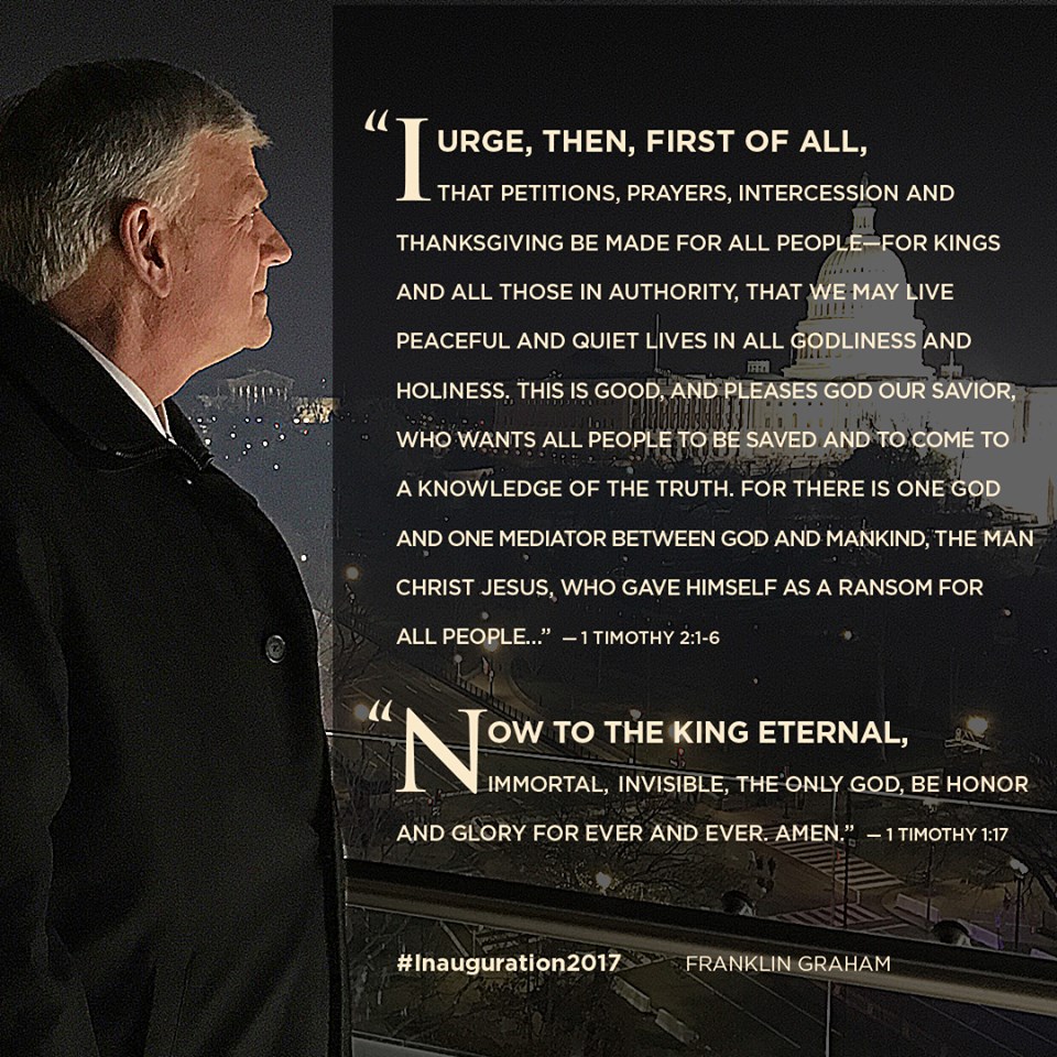 După aceea Franklin Graham a citit pasajul din 1 Timotei 2:1-6, pasaj care îndeamnă credincioșii să înalțe rugăciuni pentru cei înălțați în dregătorii.