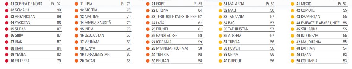 Cu o rată de violență care depășește chiar și Nigeria de Nord, Pakistanul a urcat în acest an pe locul 4. Din cauza agresiunilor extremiste hinduiste împotriva creștinilor, India se află mai sus (locul 15) decât niciodată. Cu exceptia Yemenului devastat de război, persecuția a crescut cel mai mult în țările asiatice. În Laos, în Bangladesh, în Vietnam și în Bhutan, situația s-a înrăutățit iar naționalismul budist a readus Sri Lanka printre primele 50 de țări.