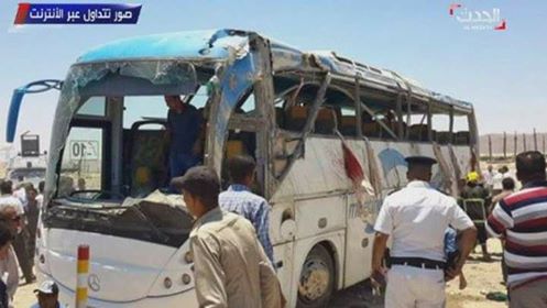 Potrivit televiziunii de stat, un autobuz care transporta creștini egipteni a fost atacat de bărbați înarmați.