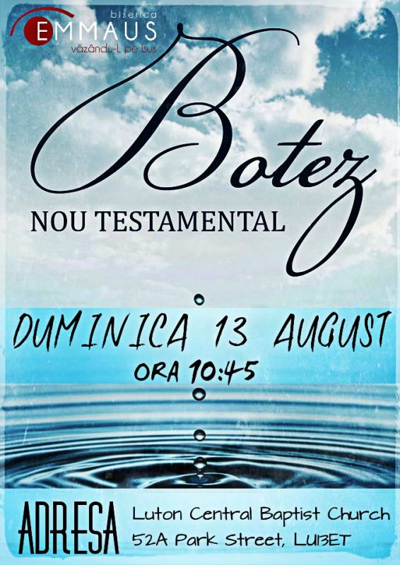 Biserica Emmaus Luton are bucuria de a vă invita la un botez Nou-Testamental.