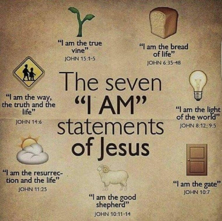 Evanghelia după Ioan, apostolul iubirii, prezintă şapte sintagme “Eu Sunt…” rostite de Domnul Isus. Pentru un evreu convins, tradiţionalist, sintagma “Eu Sunt…” este numele sacru al lui Dumnezeu pe care ei îl rosteau în contexte unice, cu mare grijă. Domnul Isus a ales aceste şapte comparaţii în care se poziţionează ca şi Dumnezeu, explicând oamenilor importanţa vitală a prezenţei lui în viaţa noastră. Nu poate un om să trăiască sănătos, fericit, conectat cu Dumnezeu Tatăl, fără Dumnezeu Fiul.