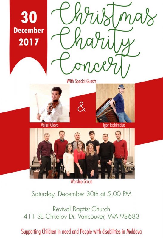 Întâlnirile la Concertul de Crăciun cu scop caritabil au devenit o tradiţie pentru comunitatea creştinilor evanghelici din Portland, Vancouver Metro Area originari din Republica Moldova. Cea de-a IV-a ediţie îşi va scrie istoria sâmbătă, 30 decembrie 2017. Evenimentul va fi găzduit de Revival Baptist Church începând cu ora 17:00, ora statului Washington şi la 3 dimineaţa, ora Chişinăului.