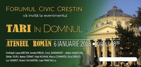Ediţia 2018 a evenimentului cultural evanghelic organizat de Forumul Civic Creştin a avut motto-ul: „Tari în Domnul”. Programul adună anual pe scena Ateneului Român cele mai buni voci din comunitatea evanghelică şi liderii din toate cultele cu mesaje de încurajare şi provocare la sfinţire.