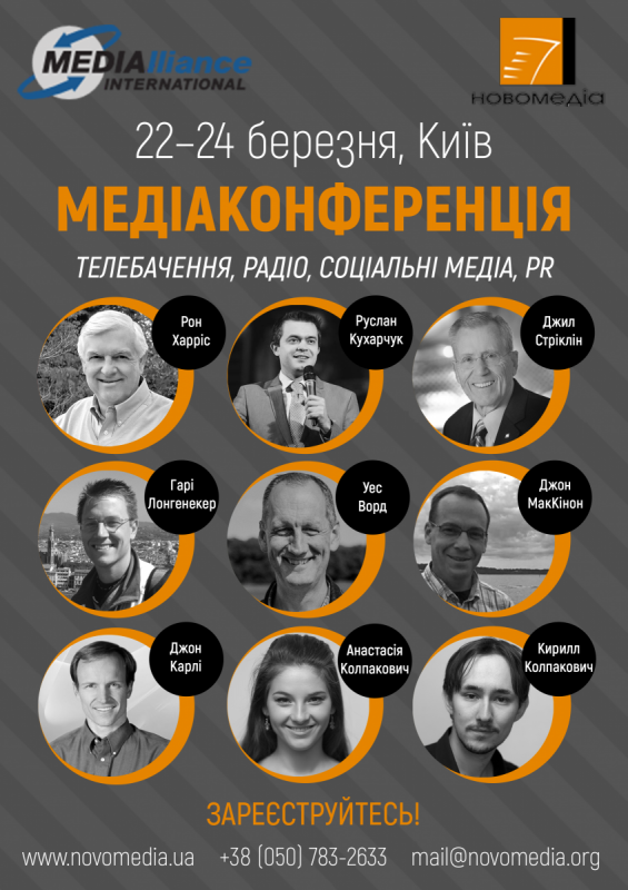 Tradiționala Conferință Media de Primăvară a Asociațiilor „Novomedia” din Ucraina și MEDIA Alliance Internațional din SUA scrie o nouă filă de istorie în perioada, 22-24 martie la Kiev. Și de această dată evenimentul se focusează pe cele patru domenii media: televiziune, radio, social-media și PR și aduce în capitala Ucrainei cei mai experimentați jurnaliști creștini din lume.