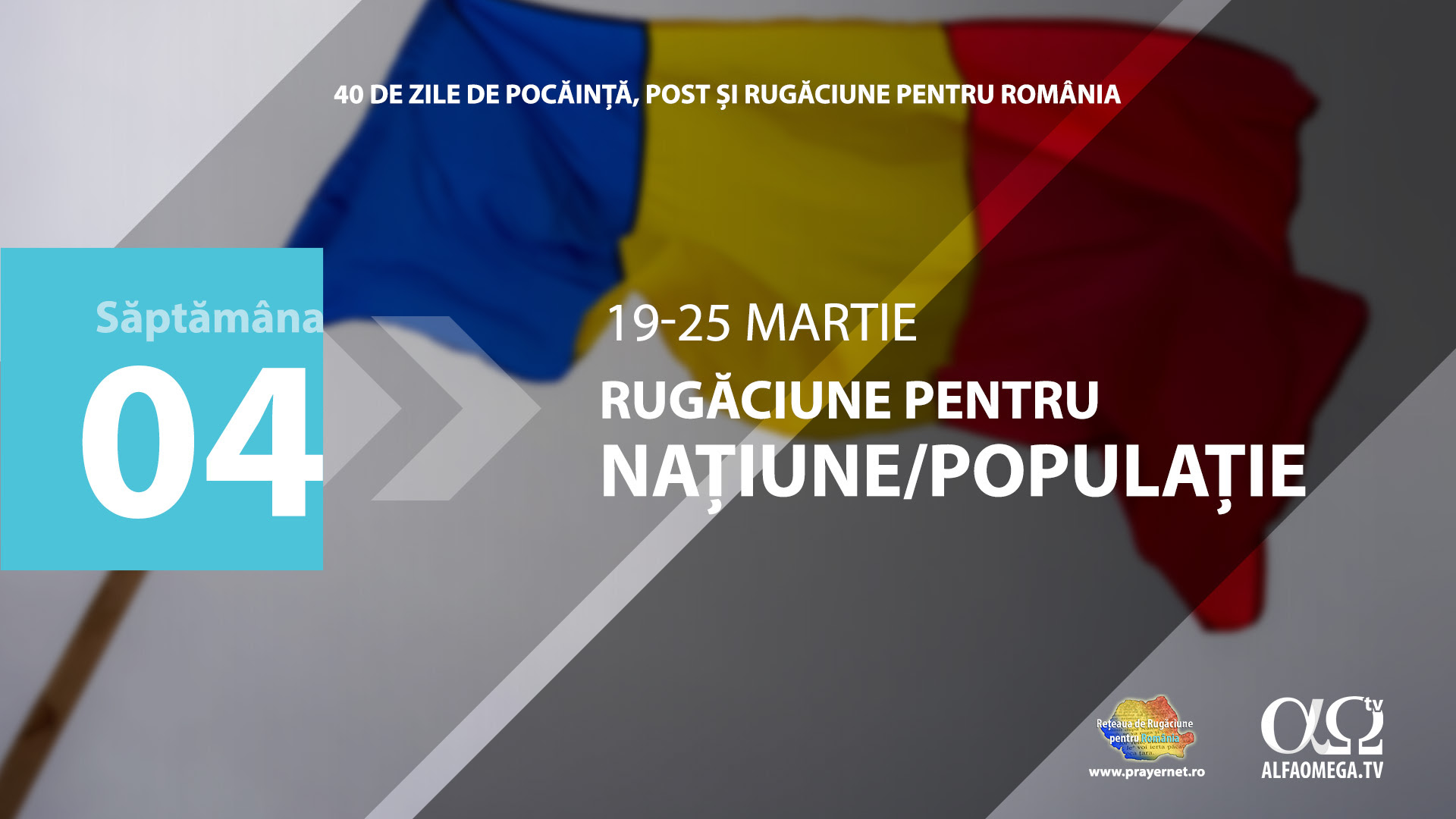 Continuăm lanțul de 40 de zile de post și rugăciune pentru România. Aducem înaintea Domnului în perioada, 19-25 martie, idolatria, viciile și ura de care este măcinat poporul român.