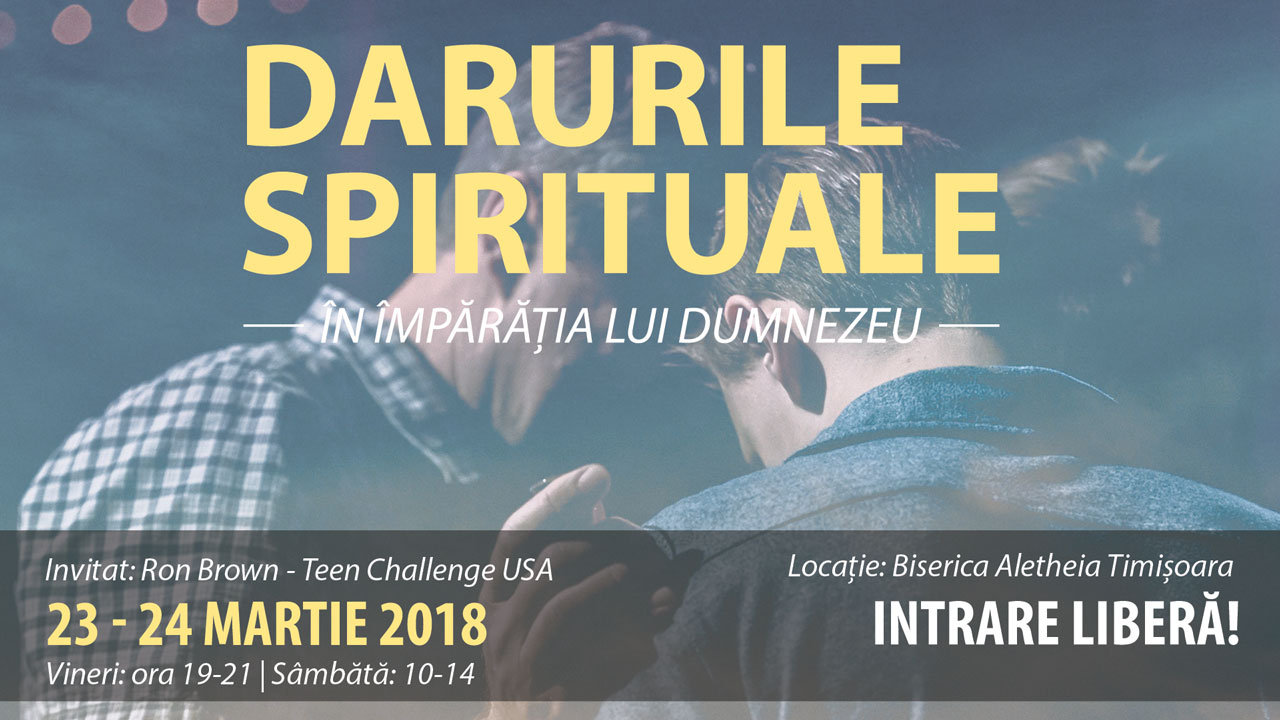 În perioada, 23-24 martie, Biserica „Aletheia” Timișoara găzduiește Conferința: „Darurile Spirituale în Împărăția lui Dumnezeu”. Conferențiarul evenimentului este pastorul și directorul executiv al Organizației Tenn Challenge, Ron Brown din Sudul Californiei, SUA.