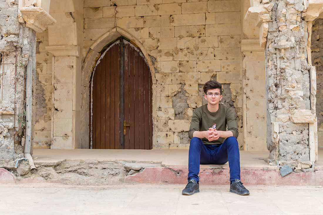 Reprezentanţii organizaţiei Open Doors au stat de vorbă cu el în faţa bisericii Tahira din Qaraqosh, una din cele mai mari biserici creştine din Orientul Mijlociu. Grădina bisericii a fost folosită de către militanţi ISIS ca şi teren de antrenament pentru terorişti. Coloanele de marmură ale bisericii sunt pline de găuri făcute de gloanţe, că o mărturie a urii pe care o au teroriştii faţă de creştinism şi cruce.
