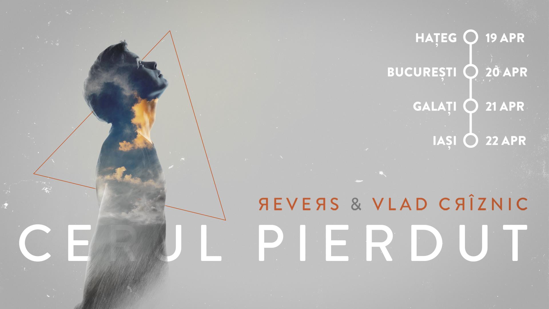 În perioada, 19-22 aprilie, trupa Revers și Vlad Crîznic îți aduc o veste bună! Află cum poți să găsești: „Cerul Pierdut” în turneul de primăvare care trece prin orașele: Hațeg, București, Galați și Iași.