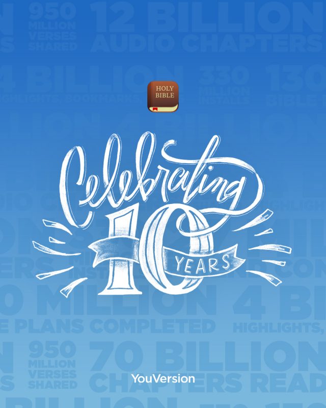 Știai că atunci când distribui pe rețele de socializare, contribui la creșterea impactului Aplicației Biblia? Sărbătorește azi cu noi și împărtășește pe platformele sociale preferate (nu uita să etichetezi @youversion și să utilizezi hashtag # bibleapp10).