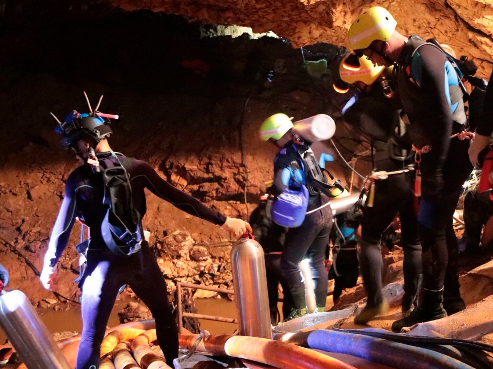 Cei doisprezece băieţi şi antrenorul lor au fost blocaţi în peştera pe care o explorau după ce mai multe ploi au cauzat inundații, făcând imposibilă întoarcerea lor înapoi la lumina zilei. Eforturile care s-au făcut pentru salvarea lor au fost disperate şi s-au soldat şi cu moartea unui salvator, un fost membru al trupelor speciale din Thailanda.
