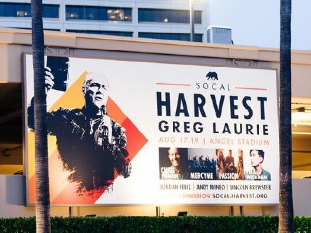 Pastorul Greg Laurie a fost forţat să renunţe la câteva panouri cu afişe în care era înfăţişat ţinând o Biblie în mână şi prin care anunţa o evanghelizare, eveniment intitulat SoCal Harvest, care va avea loc în curând.