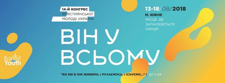 Peste 2500 de tineri își dau întâlnire pe malul mării la cel de-al 14-lea Congres cu tema: „El este în tot”. Evenimentul organizat de Departamentul Tineret al Uniunii Bisericilor Creștine Evanghelice Baptiste din Ucraina, este găzduit în perioada 13-18 august 2018, la baza de odihnă „Vara Binecuvântată” de lângă orașul Iujnîi – SUD.