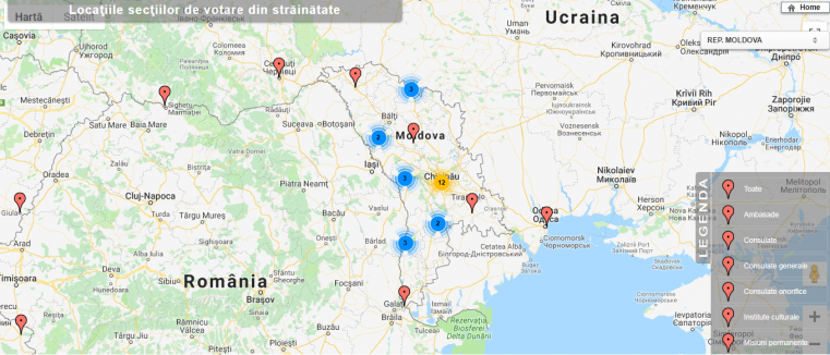 De asemenea pentru românii de pretutindeni, MAE a făcut publică Harta cu locațiile secțiilor de votare realizată pe baza platformei publice Google Maps. Fiecare utilizator îşi poate alege ţara în care se află şi din secţiunea legende poate vedea toate secţiile de votare împărţite pe categorii.